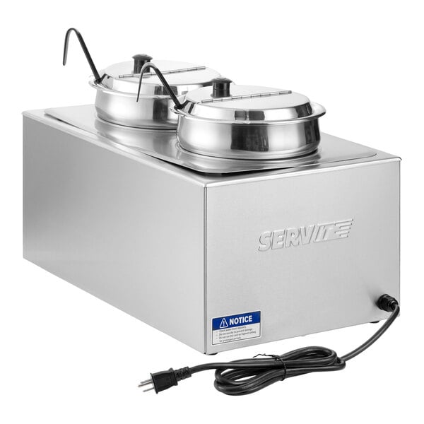 Read more reviewsKeep prepared menu items hot, safe, and ready to plate with this ServIt twin well countertop food warmer with digital controls, 2 insets, 2 covers, and 2 ladles!