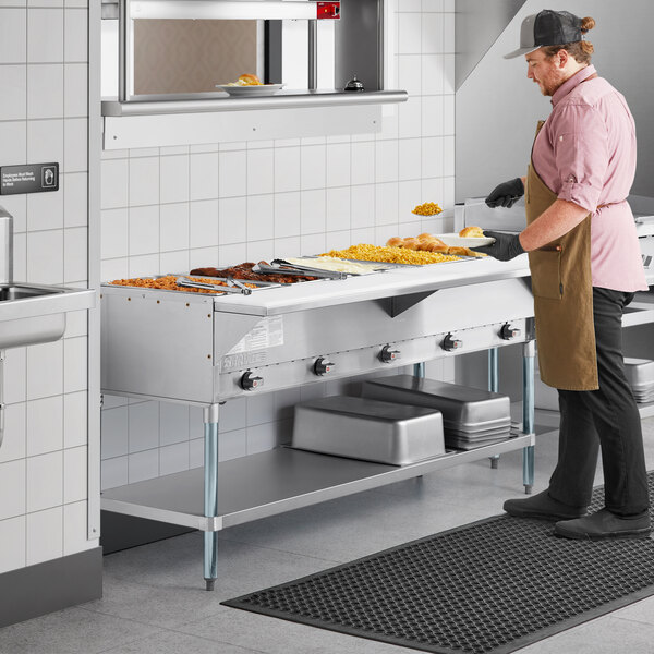 Read more reviewsKeep all of your menu items piping hot and readily available with the ServIt GST-5WE-LP five pan open well liquid propane steam table with undershelf!