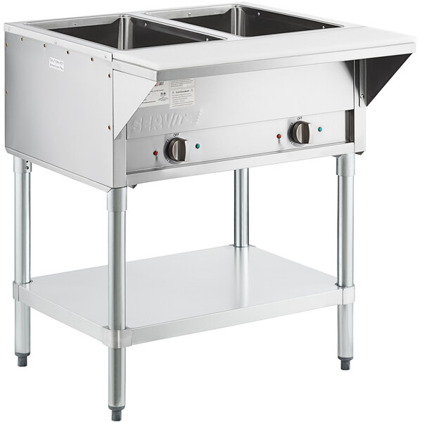 Two Pan Open Well Electric Steam Table with Adjustable Undershelf - 120V, 1000W